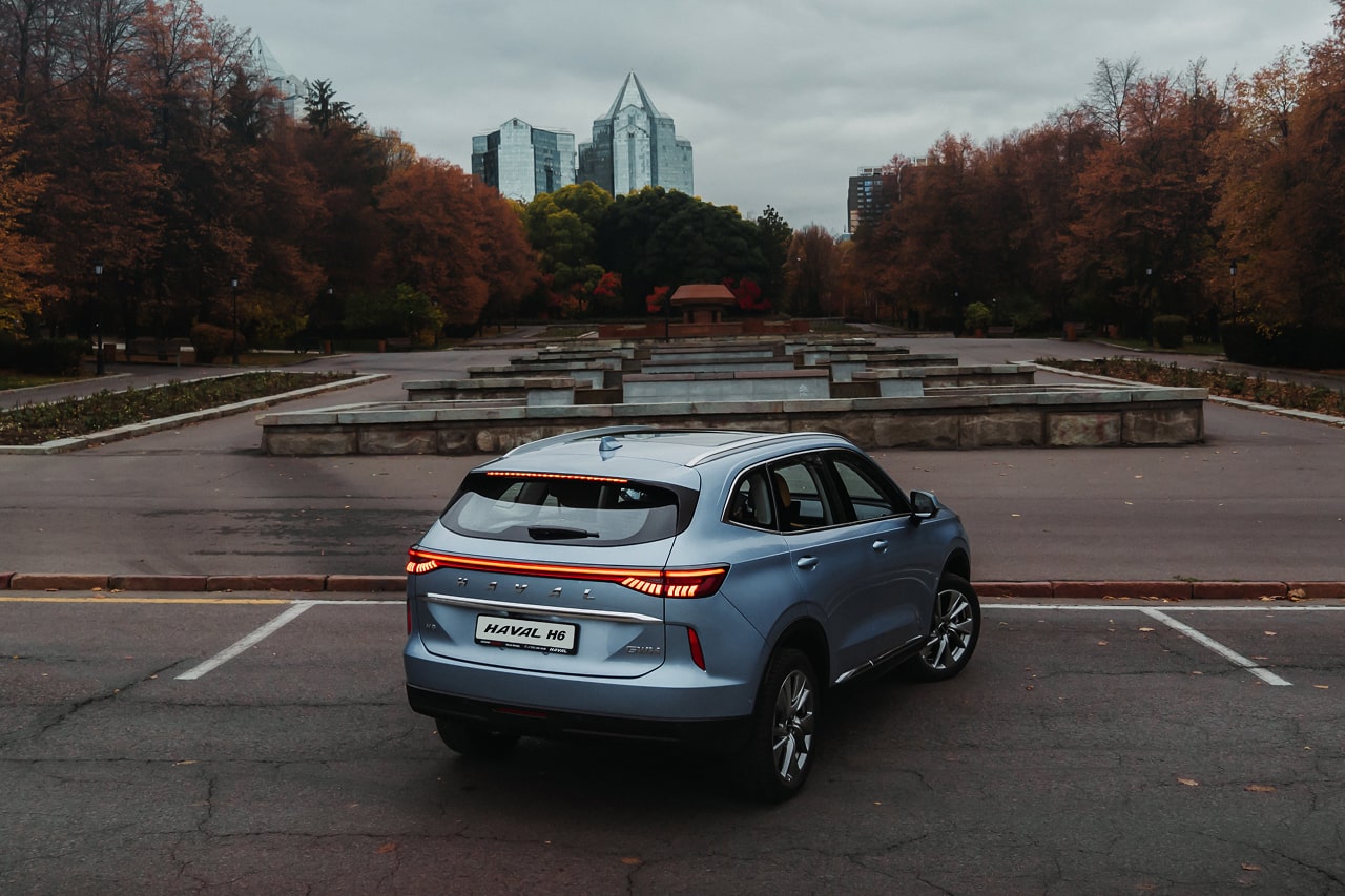 Задняя часть Haval H6 оснащена современными светодиодными фонарями, которые соединены между собой светящейся линией, создающей эффект целостности и ширины автомобиля. Бампер имеет интегрированные выхлопные трубы и защитную накладку, подчеркивающую внедорожный характер кроссовера.