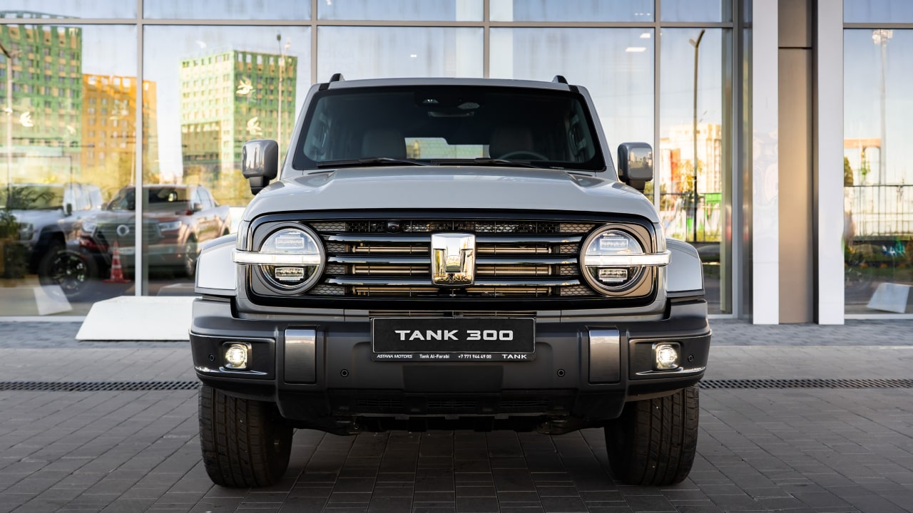 Массивная и выразительная решетка радиатора с крупной эмблемой Tank придает автомобилю агрессивный и внушительный вид.