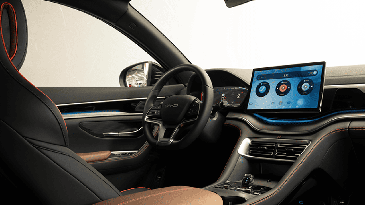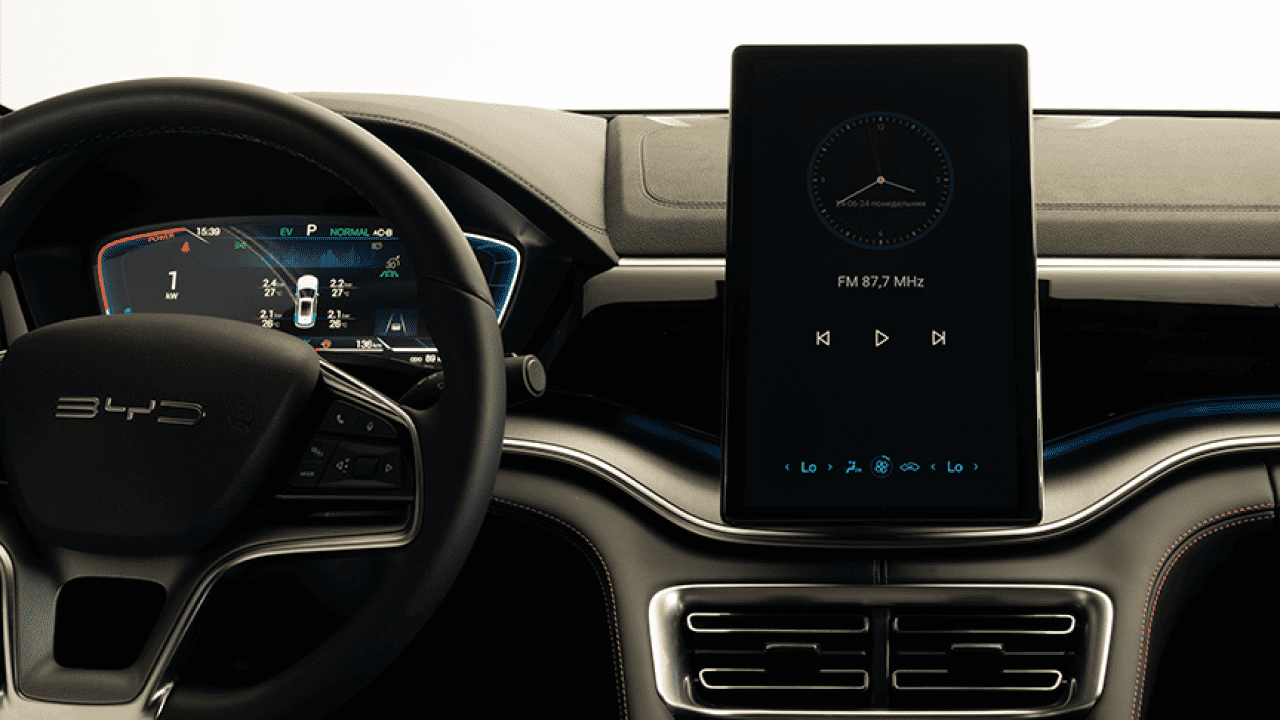 15,6-дюймовый сенсорный экран способен вращаться в портретный и ландшафтный режимы, предоставляя гибкость для работы с мультимедиа и навигацией. Дисплей поддерживает голосовое управление и интеграцию с Apple CarPlay и Android Auto.