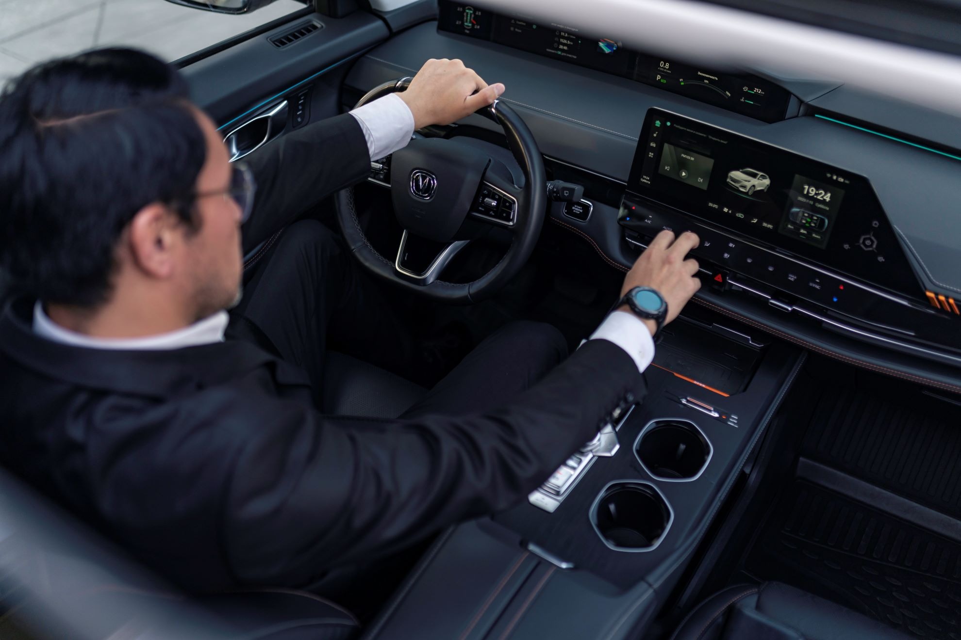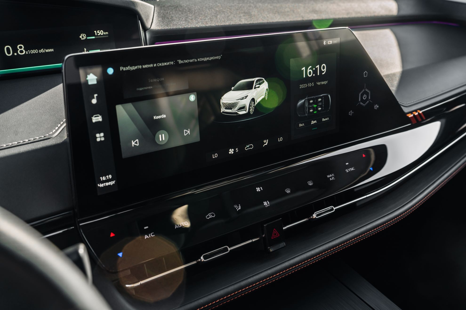 Үлкен сенсорлы экраны бар заманауи мультимедиялық жүйе.