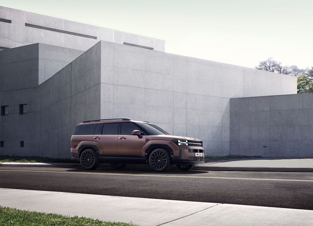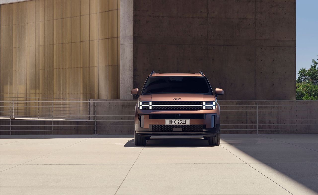 Новый Santa Fe имеет более агрессивный и современный внешний вид с широкими решетками радиатора, острыми линиями кузова и стильными светодиодными фарами.