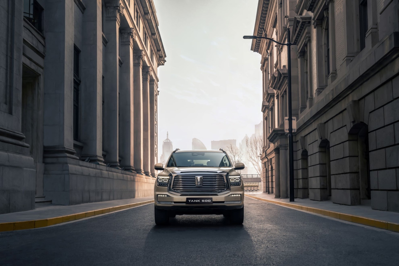 Tank 500 обладает агрессивным и мощным внешним видом, подчеркивающим его внедорожные способности.